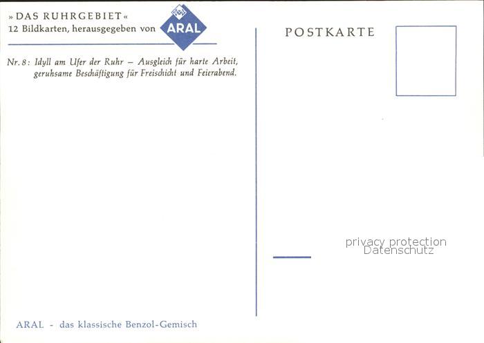 72132031 Werbung Reklame Aral Das Ruhrgebiet Bildkarte Nr. 8 Idyll am Ufer der Ruhr KatCode 22060000008200
