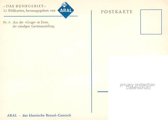 73145311 Werbung Reklame Aral Künstlerkarte Ruhrgebiet Gruga Essen Gartenausstellung KatCode 22060000008200