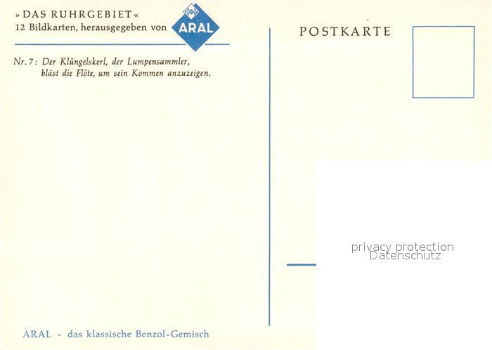 73145313 Werbung Reklame Aral Künstlerkarte Ruhrgebiet Klüngelskerl Lumpensammler Flöte KatCode 22060000008200