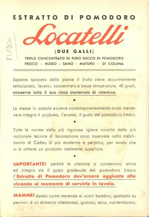 11297703 Werbung Reklame Locatelli Estratto di pomodoro Tomatenextrakt KatCode 22060000008200