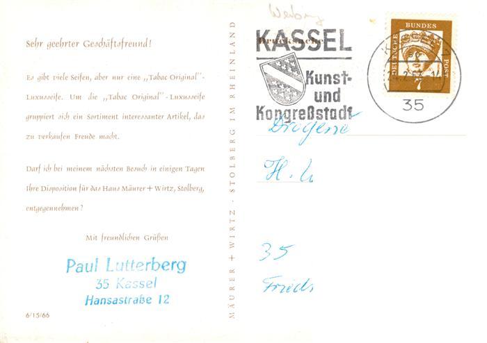 73893730 alte Postkarte Werbung Reklame Tabac Original Kassel postalisch gelaufen Erhaltung siehe scans [IrynaD87] KatCode: 22060000008200