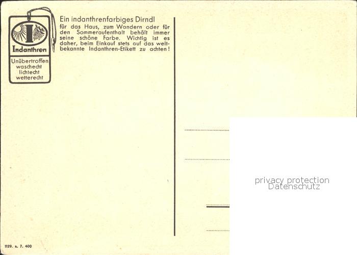 72132027 Werbung Reklame Textilien Farbstoff Indanthren Dirndl KatCode 22060000008200