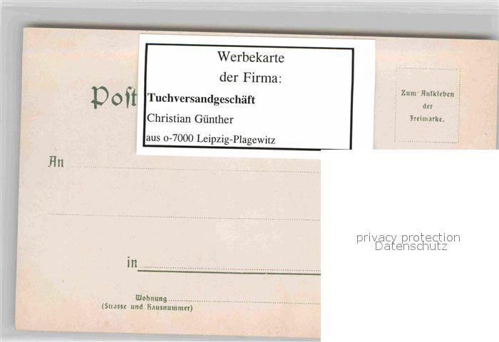 42778971 Werbung Reklame Tuchversandgeschäft Christian Günther Leipzig-Plagewitz Ruine Kynast KatCode 22060000008200