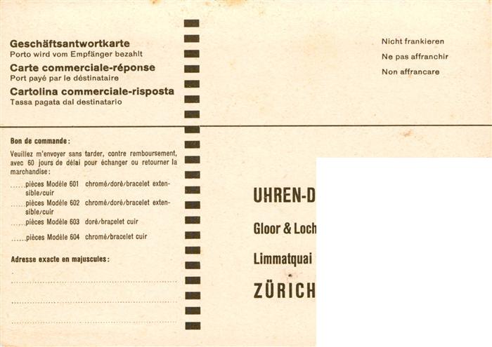 73943578 Werbung Reklame Uhren Gloor & Locher postalisch nicht gelaufen Keine Postkarte (siehe scan) Erhaltung siehe scans [IrynaD87] KatCode: 22060000008200