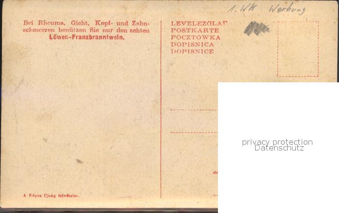 32731724 Werbung Reklame Waehrend des Kampfes Loewenfranzbranntwein WK1 postalisch nicht gelaufen Erhaltung siehe scans [Tetiaova] KatCode: 22060000008200