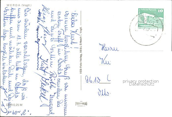 72432249 alte Postkarte Werda Auerbach postalisch gelaufen Erhaltung siehe scans KatCode: 11110014178730