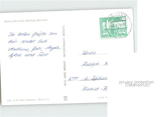 72383884 alte Postkarte Werdau Sachsen Konsum Gaststaette Daenkritzer Schmiede postalisch gelaufen Erhaltung siehe scans KatCode: 11110014193490