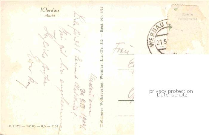 32658603 alte Postkarte Werdau Sachsen Markt postalisch gelaufen Erhaltung siehe scans [AndreD76] KatCode: 11110014193490
