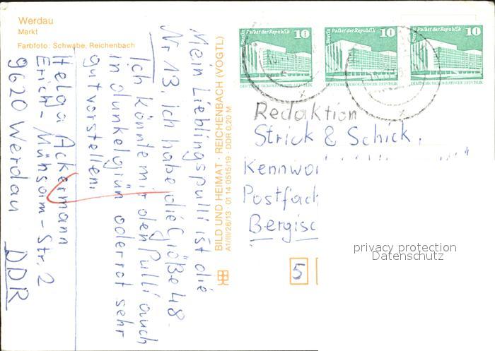 72414926 alte Postkarte Werdau Sachsen Markt postalisch gelaufen Erhaltung siehe scans KatCode: 11110014193490