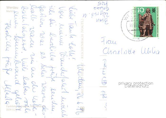 72120627 alte Postkarte Werdau Sachsen Markt postalisch gelaufen Erhaltung siehe scans KatCode: 11110014193490