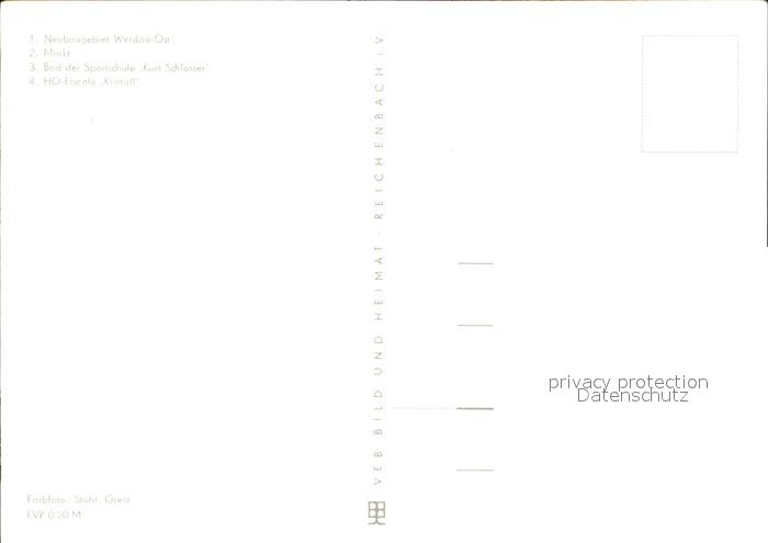 72546298 Werdau Sachsen Markt Bad der Sportschule Kurt Schlosser HO Eiscafe Kristall postalisch nicht gelaufen Erhaltung siehe scans [KathaD79 kv011box] KatCode: 11110014193490