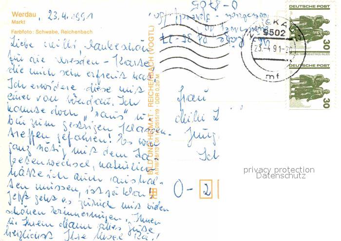 72720838 alte Postkarte Werdau Sachsen Markt postalisch gelaufen Erhaltung siehe scans [LiesaD40] KatCode: 11110014193490