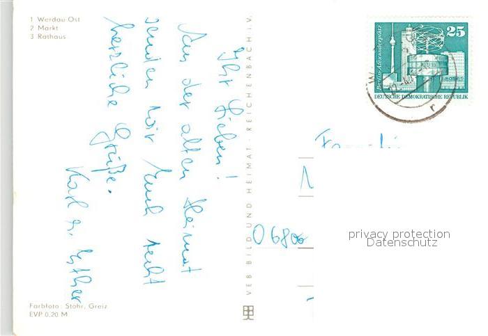 73076101 alte Postkarte Werdau Sachsen Rathaus Marktplatz postalisch gelaufen Erhaltung siehe scans [KathaD81] KatCode: 11110014193490