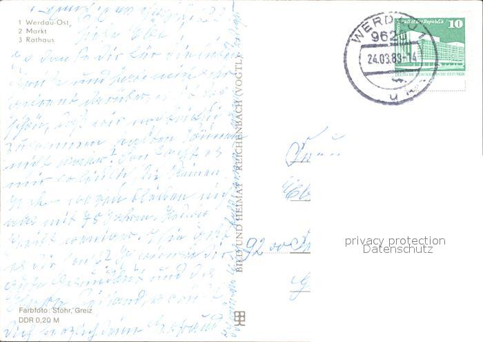 72136008 alte Postkarte Werdau Sachsen Werdau Ost Markt Rathaus postalisch gelaufen Erhaltung siehe scans KatCode: 11110014193490