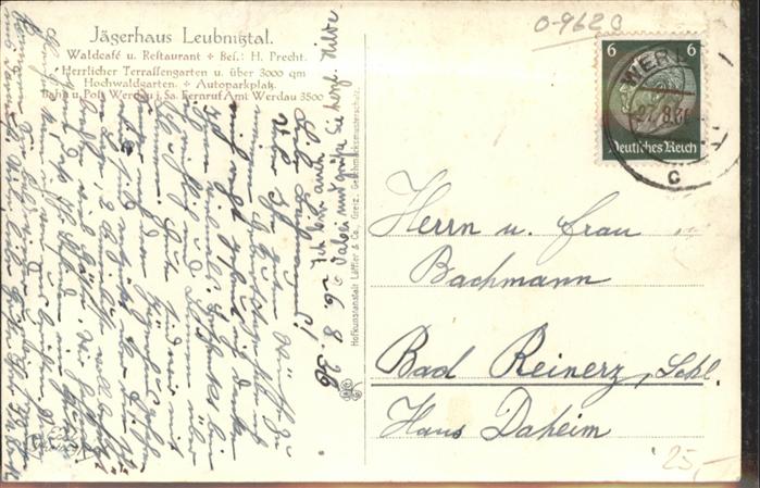 40908359 Werdau [Stempelabschlag] Jägerhaus Leubnitztal Werdauer Wald KatCode 11110014193490
