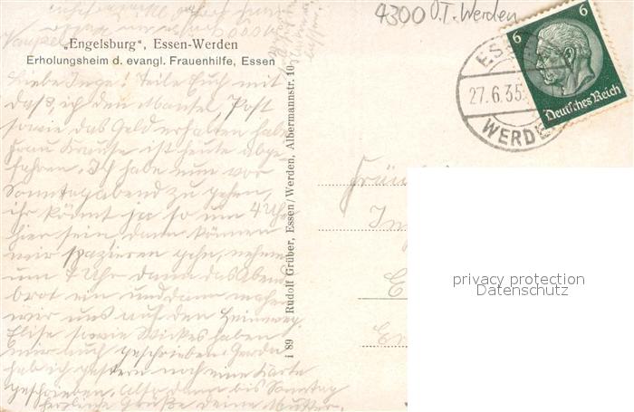 73701868 alte Postkarte Werden Ruhr Essen Engelsburg Erholungsheim d. evangl. Frauenhilfe postalisch gelaufen Erhaltung siehe scans [LiesaD40] KatCode: 11110005113000