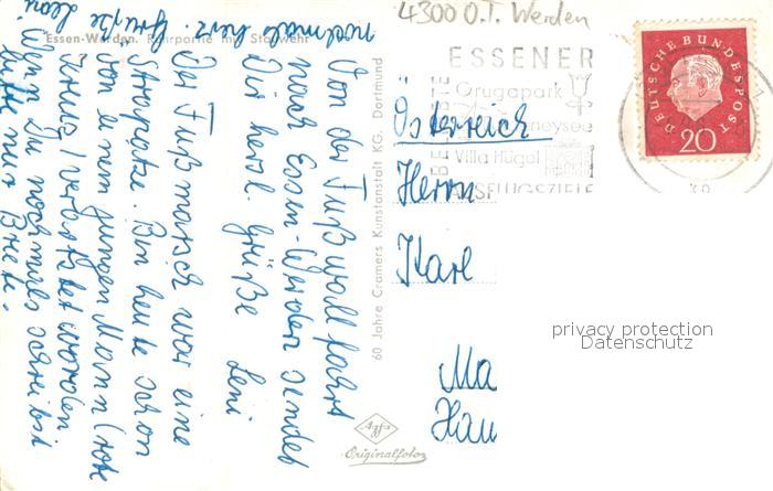 73692847 alte Postkarte Werden Ruhr Essen Partie an der Ruhr mit Stauwehr postalisch gelaufen Erhaltung siehe scans [FriedD77] KatCode: 11110005113000