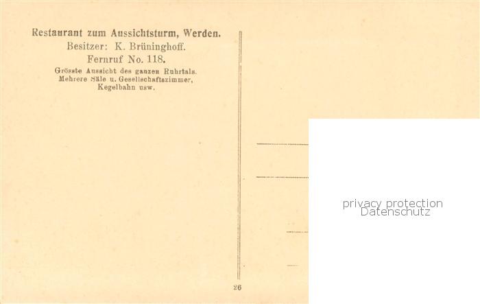 73772659 Werden Ruhr Essen Ruhrpartie Restaurant zum Aussichtsturm Werden postalisch nicht gelaufen Erhaltung siehe scans [FriedD77] KatCode: 11110005113000