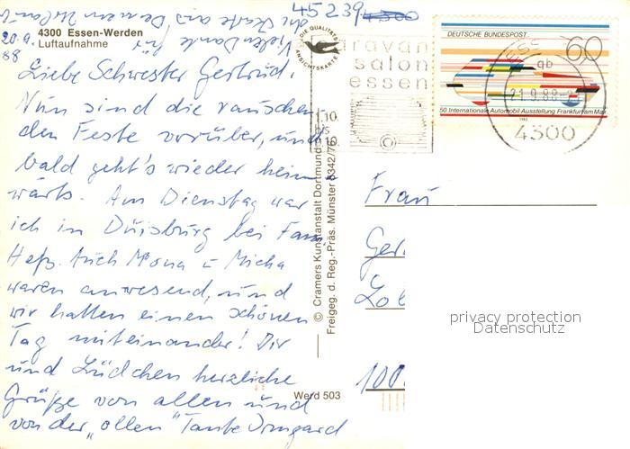 73544481 alte Postkarte Werden Ruhr Fliegeraufnahme postalisch gelaufen Erhaltung siehe scans [LiesaD40] KatCode: 11110005113000
