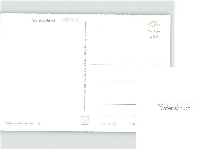 71850699 Werder Havel Bahnhof Bernhard Kellermann Strasse Rat der Stadt Konsum Kaufhaus Muehle postalisch nicht gelaufen Erhaltung siehe scans KatCode: 11110012069656