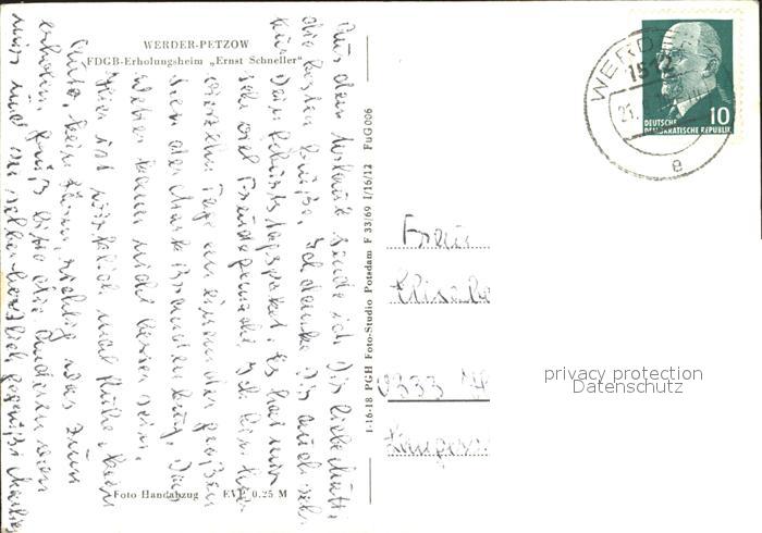 72078522 alte Postkarte Werder Havel Erholungsheim Ernst Schneller postalisch gelaufen Erhaltung siehe scans KatCode: 11110012069656