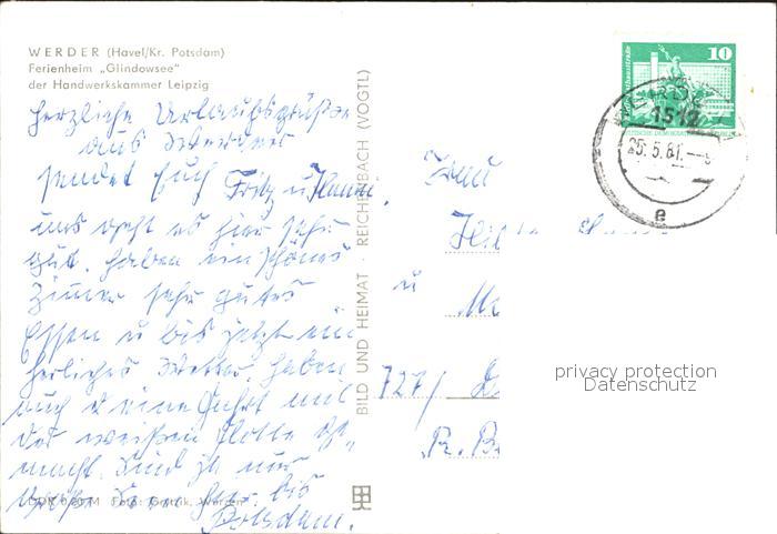 72053372 alte Postkarte Werder Havel Ferienheim Glindowsee der Handwerkskammer Leipzig postalisch gelaufen Erhaltung siehe scans KatCode: 11110012069656
