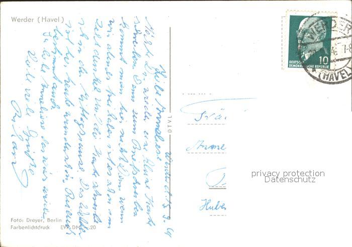 72123461 alte Postkarte Werder Havel Havelpartie mit Windmuehle postalisch gelaufen Erhaltung siehe scans KatCode: 11110012069656