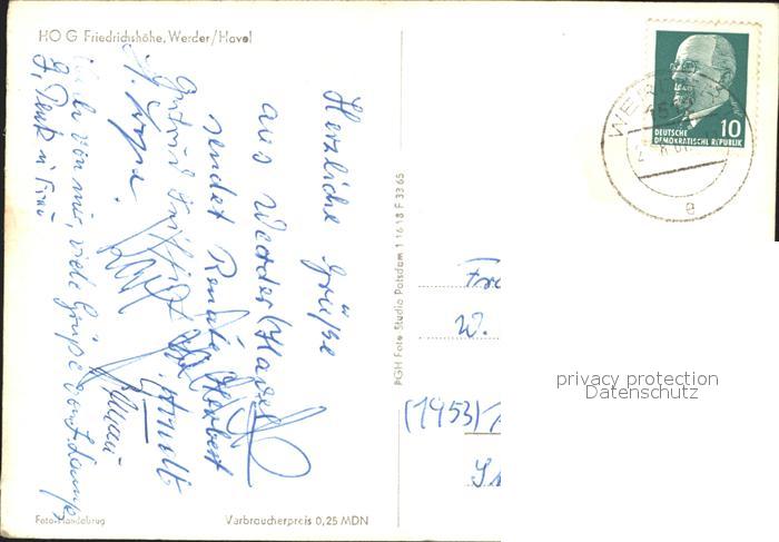 72042977 alte Postkarte Werder Havel HOG Friedrichshoehe postalisch gelaufen Erhaltung siehe scans KatCode: 11110012069656