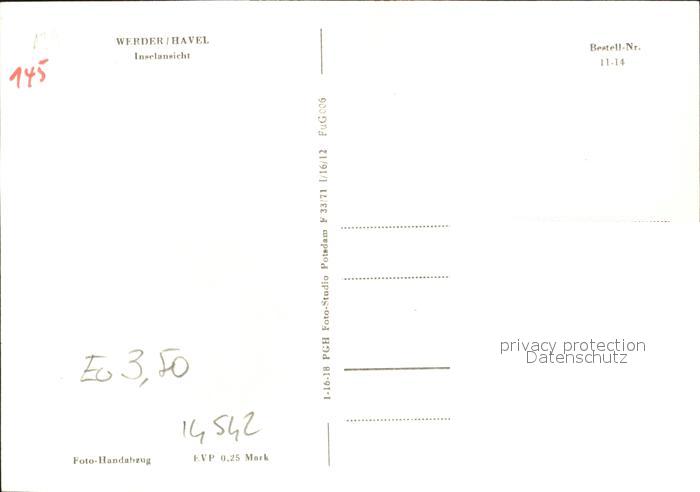 72137062 Werder Havel Inselansicht Bootssteg postalisch nicht gelaufen Erhaltung siehe scans KatCode: 11110012069656