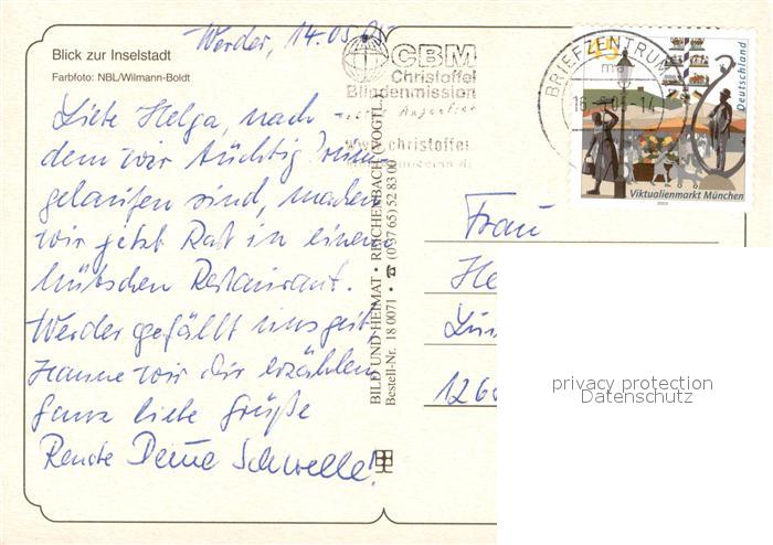 73705858 alte Postkarte Werder Havel Inselstadt postalisch gelaufen Fliegeraufnahme Erhaltung siehe scans [FriedD77] KatCode: 11110012069656