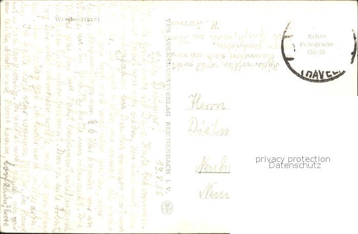 72385974 alte Postkarte Werder Havel mit Windmuehle und Kirche postalisch gelaufen Erhaltung siehe scans KatCode: 11110012069656