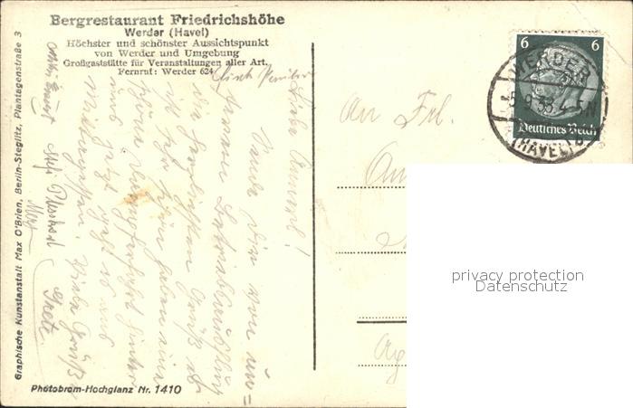72010741 alte Postkarte Werder Havel Panorama von der Friedrichshoehe postalisch gelaufen Erhaltung siehe scans KatCode: 11110012069656