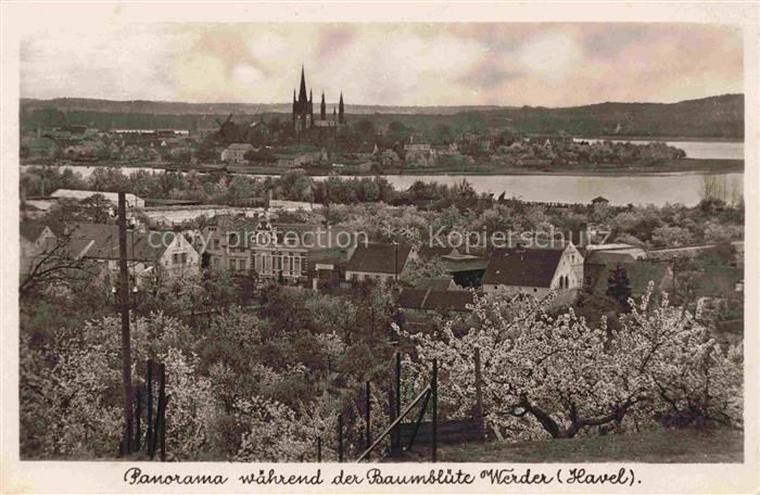 74094161 alte Postkarte Werder Havel Panorama waehrend der Baumbluete postalisch gelaufen Erhaltung siehe scans [FriedD77] KatCode: 11110012069656