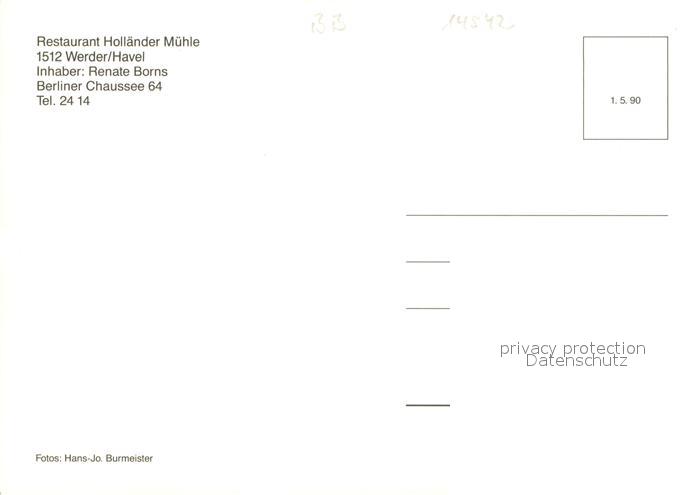 73645635 Werder Havel Restaurant Hollaender Muehle postalisch nicht gelaufen Erhaltung siehe scans [FriedD77] KatCode: 11110012069656