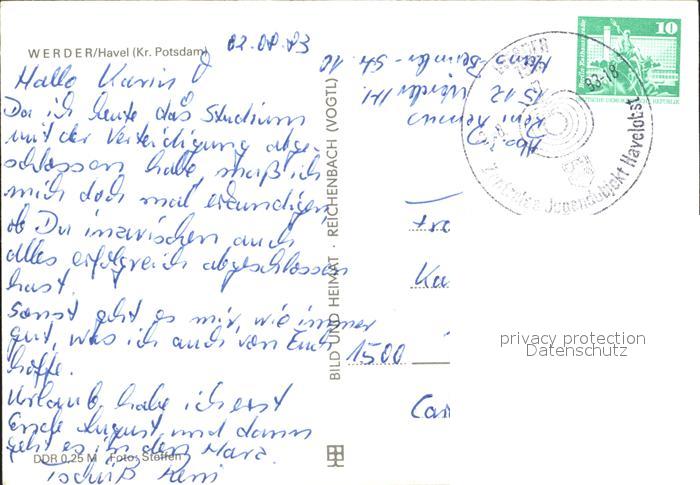 72153639 alte Postkarte Werder Havel Teilansicht Kirche Bootspartie postalisch gelaufen Erhaltung siehe scans KatCode: 11110012069656