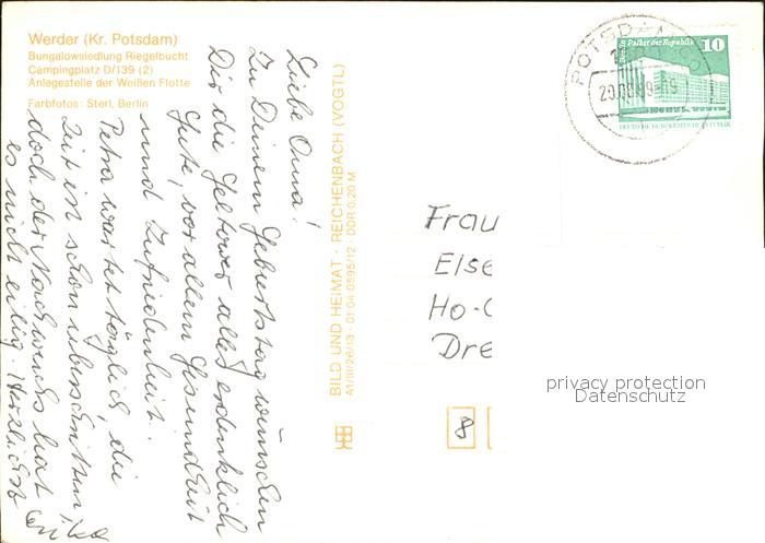 72372553 alte Postkarte Werder Potsdam Bungalowsiedlung Riegelbucht Campingplatz postalisch gelaufen Erhaltung siehe scans KatCode: 11110012054000