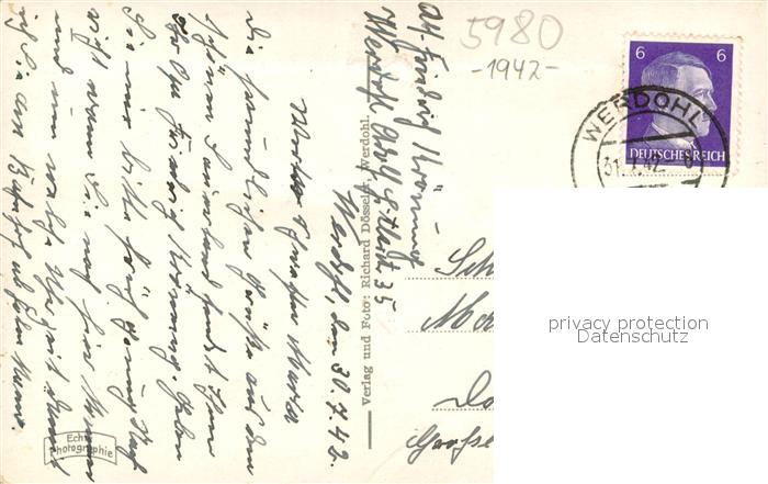 73701855 alte Postkarte Werdohl Blick von der Walter-Borbet-Stiftung Remmelshagen postalisch gelaufen Erhaltung siehe scans [LiesaD40] KatCode: 11110005962060