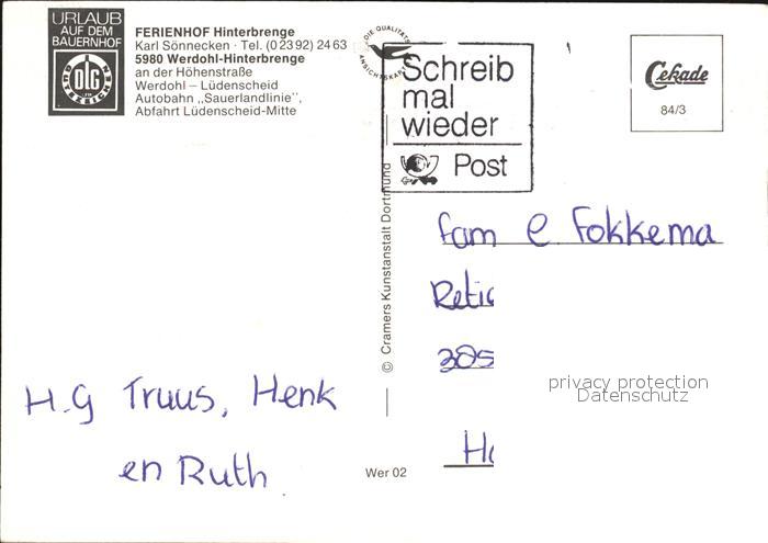 72397622 Werdohl Ferienhof Hinterbrenge Fliegeraufnahme Zimmer Karte postalisch nicht gelaufen Erhaltung siehe scans KatCode: 11110005962060