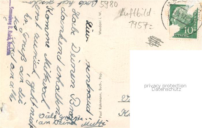 73701859 alte Postkarte Werdohl Fliegeraufnahme Gesamtansicht postalisch gelaufen Erhaltung siehe scans [LiesaD40] KatCode: 11110005962060