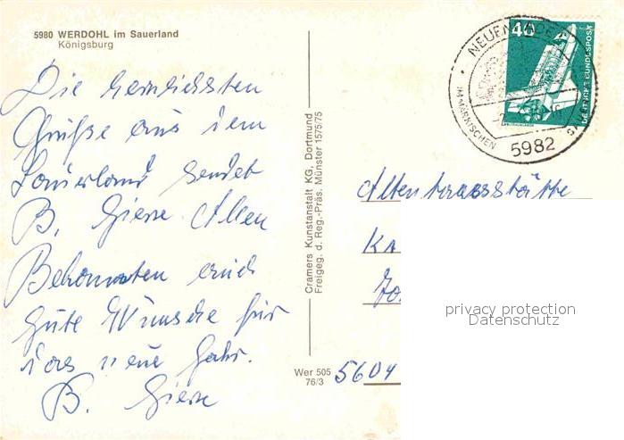 72728961 alte Postkarte Werdohl Fliegeraufnahme Koenigsburg postalisch gelaufen Erhaltung siehe scans [AndreD76] KatCode: 11110005962060