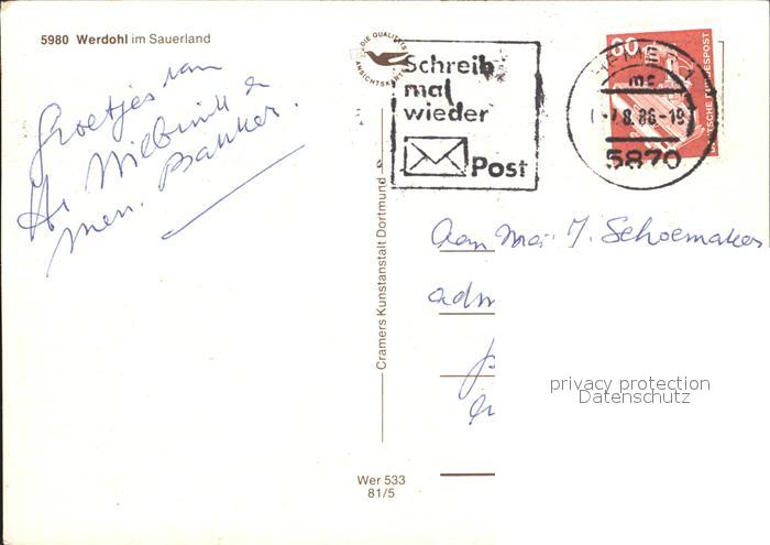 72270617 alte Postkarte Werdohl Ortsstrasse postalisch gelaufen Erhaltung siehe scans KatCode: 11110005962060