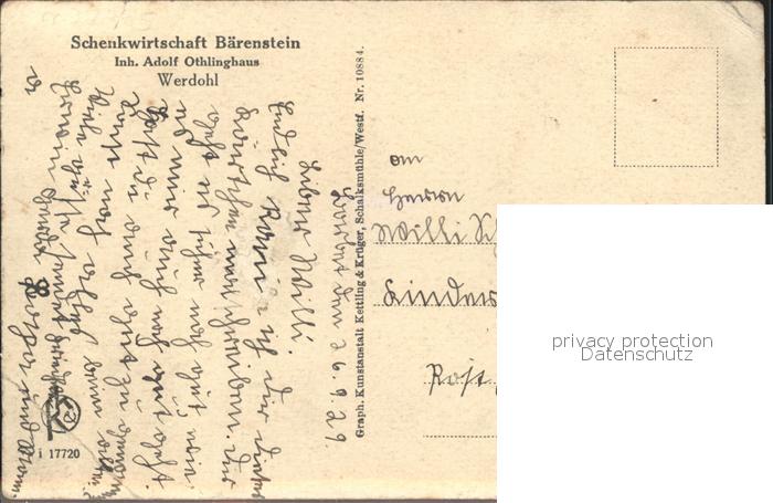 31728717 Werdohl Schenkwirtschaft Baerenstein postalisch nicht gelaufen KatCode: 11110005962060