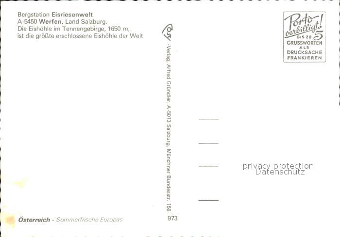 72600462 Werfen Salzburg Bergstation Eisriesenwelt Eishoehle Tennengebirge postalisch nicht gelaufen Erhaltung siehe scans [FriedD77] KatCode: 11390322050424