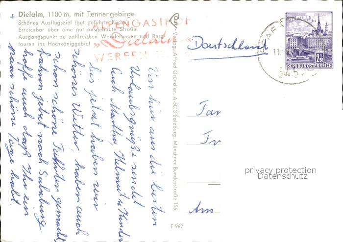 72490495 alte Postkarte Werfen Salzburg Diel Alm Tennengebirge Hochkoenig Gipfelkreuz Musiker postalisch gelaufen Erhaltung siehe scans KatCode: 11390322050424