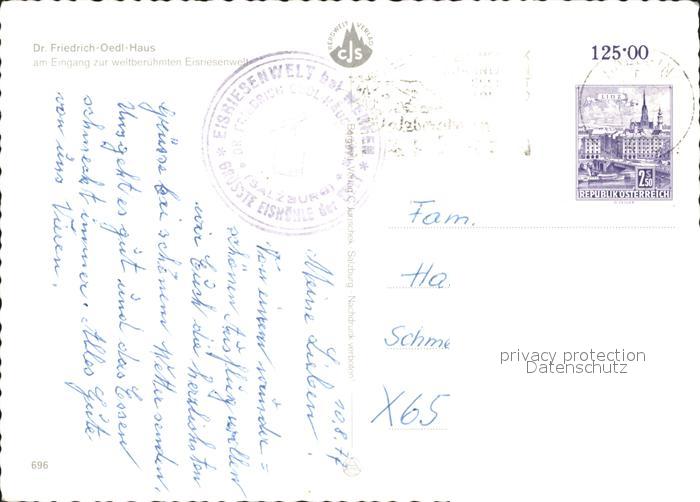 71907324 alte Postkarte Werfen Salzburg Dr. Friedrich-Oedl-Haus Enzian Edelweiss Seilbahn postalisch gelaufen KatCode: 11390322050424