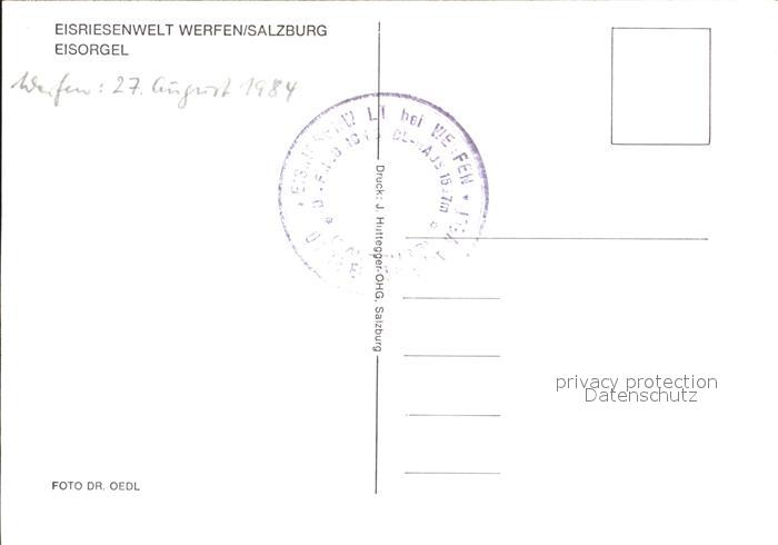 72168976 Werfen Salzburg Eisriesenwelt Eisorgel postalisch nicht gelaufen Erhaltung siehe scans KatCode: 11390322050424