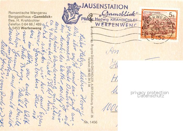 73224077 alte Postkarte Werfenweng Berggasthaus Gamsblick Wengerau Alpen postalisch gelaufen Erhaltung siehe scans [FriedD77] KatCode: 11390322050425