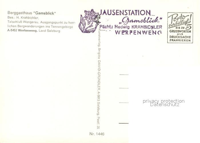 73205173 Werfenweng Berggasthaus Gamsblick Wermuthschneid Kemetstein postalisch nicht gelaufen Erhaltung siehe scans [NatalD47] KatCode: 11390322050425