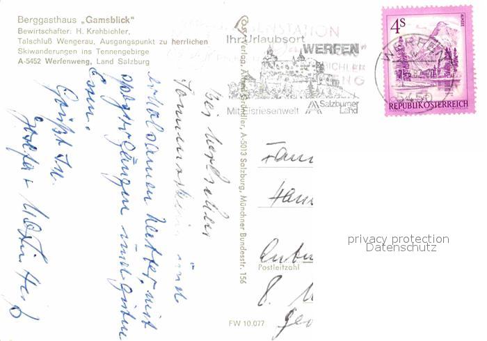 72654211 alte Postkarte Werfenweng Berggasthaus Gamsblick postalisch gelaufen Erhaltung siehe scans [WerneD78] KatCode: 11390322050425