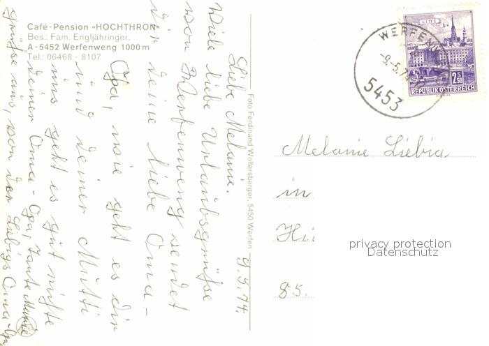 72671460 alte Postkarte Werfenweng Cafe Pension Hochthron Gastraum Bar postalisch gelaufen Erhaltung siehe scans [WerneD78] KatCode: 11390322050425